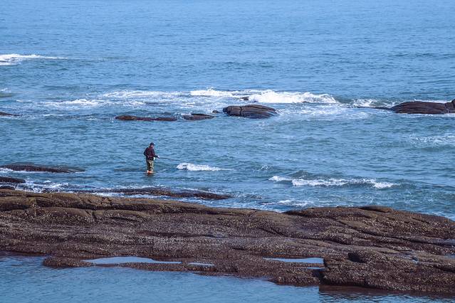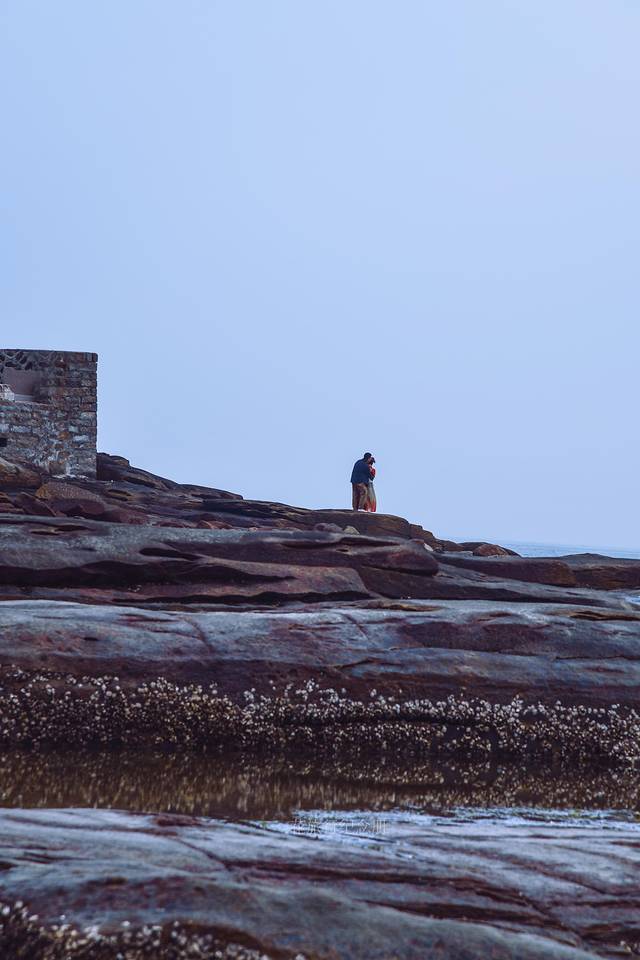 洛伽寺跟普陀山的洛伽山有几分相似,都是观音道场,都是海上“孤岛”。洛伽寺比较有趣,涨潮的时候寺院犹如漂浮在海面上,要走桥过去;退潮后深褐色岩石裸露出来,能拍大片也能顺便赶海。