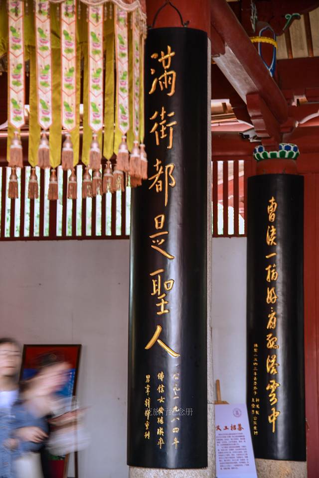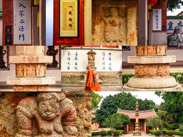 🔸宋理学家朱熹赞开元寺,“此地古称佛国,满街都是圣人”,重修开元寺时弘一大师重书。两侧楹联为弘一大师“孩童体”书法真迹。