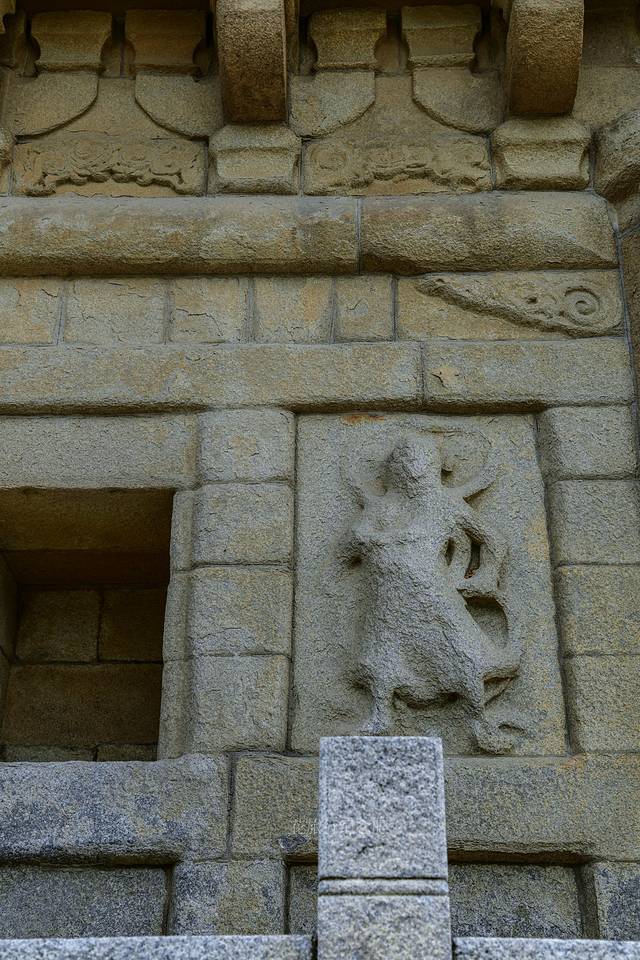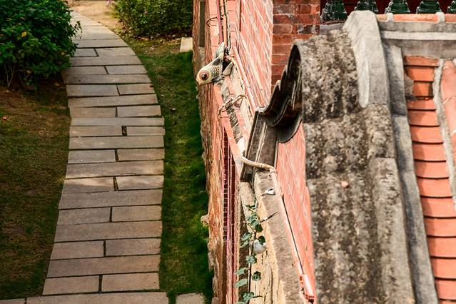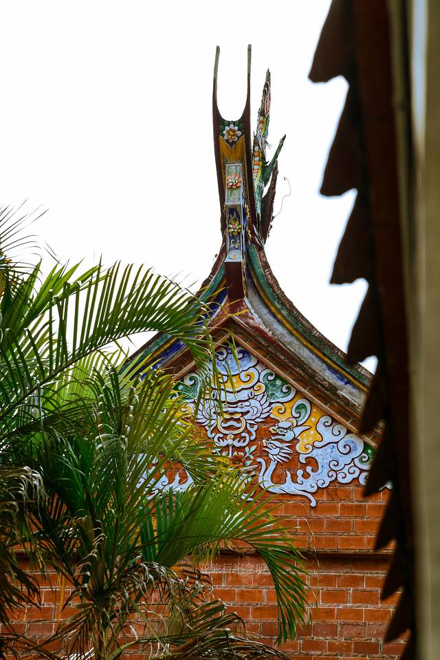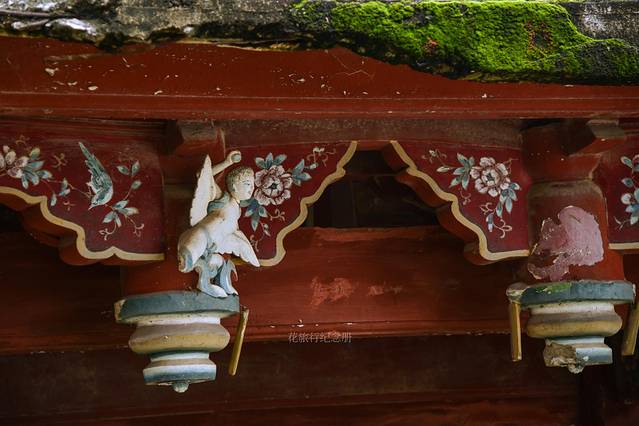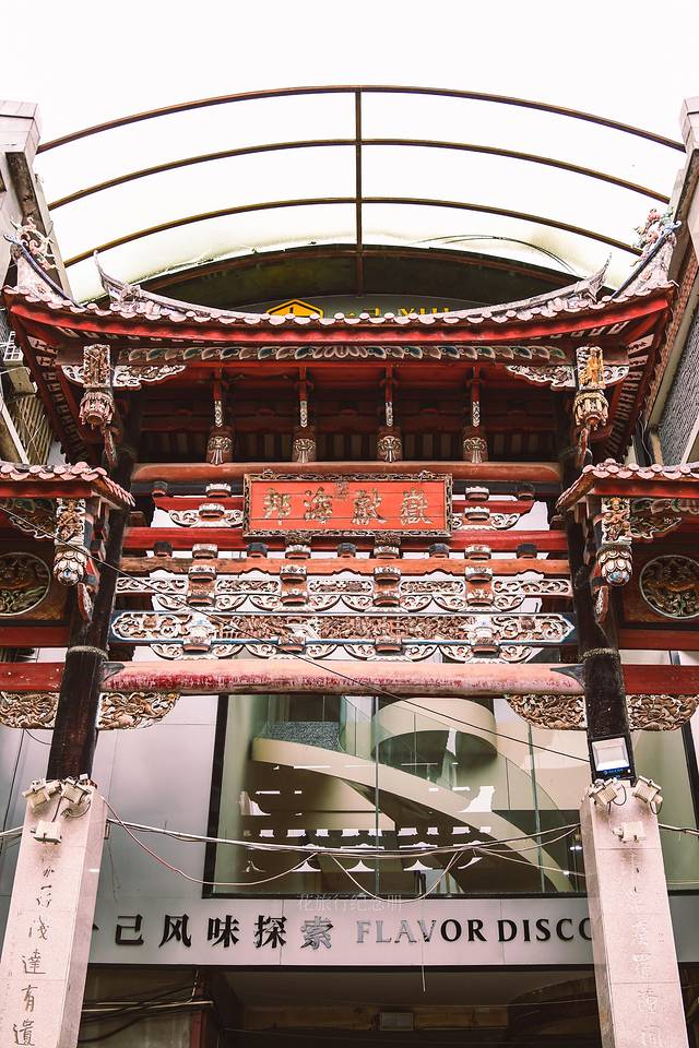 💃🏻文庙去金鱼巷方向——泮宫门楼,顶上装饰闽南风的彩瓷龙,屋檐下带翅膀的飞天却是西洋风,默默的向世人诉说着 泉州 文化的多元性。原件泮宫门楼屋顶在旁边展示,1914年建成,钢筋混凝土仿木结构。