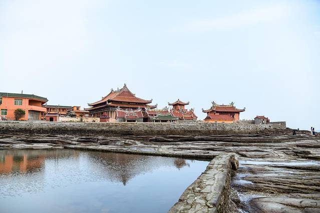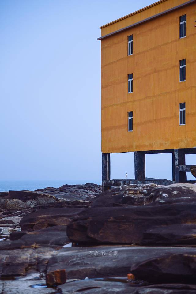 📷最佳机位3:水泥框架上寺院明黄色楼,只有退潮石头裸露出来才能站上面拍照。涨潮时一片汪洋根本过不去。