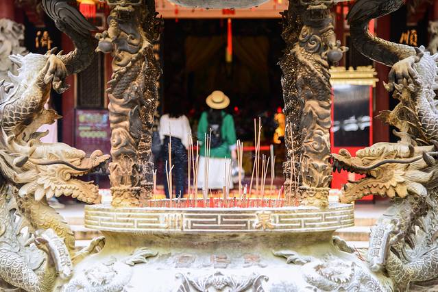 关帝庙是 泉州 人最多的庙,醉灵验的庙,在 泉州 不管是求财、事业、健康、姻缘、生育、孩子教育、家宅平安, 泉州 人都习惯去关帝庙拜拜、问问,白天香火非常旺,烧香求签人太多了,、晚上关帝庙已经关门了,香炉在马路边是依然有人去烧香,夜景拍长曝都是有人影的,简直醉了。具体步骤网上很多帖,当地人比我这个游客更懂。