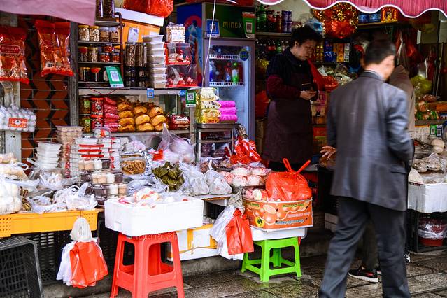 我去的时候整条街在装修,店铺基本休息或是开个小门临时办公。古城牌坊,两侧房屋都挂着绿网有工人在干活,尘土飞扬,拍照片影响比较大。