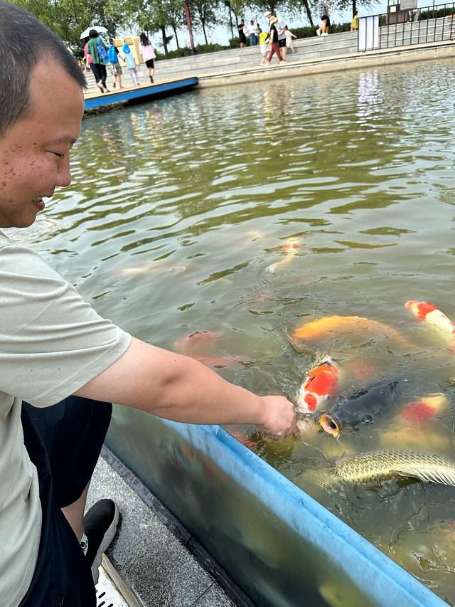 神秘接触这个特别推荐,真的太有意思了,先在工作人员那里领取一块鱼食,把鱼食紧紧握在手里,把手放入水中,大锦鲤们就会不停的吸吮你的手。那感觉像浑身过电一样,好有趣。