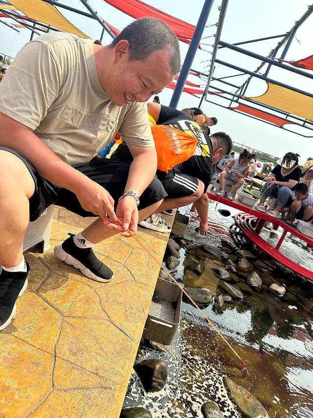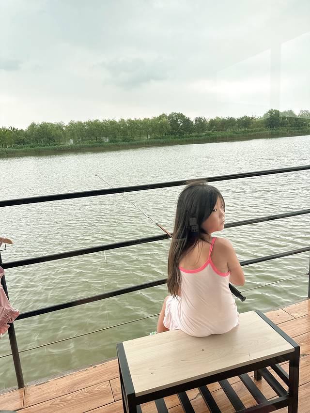 吃完饭小朋友又去钓鱼了,总是不死心觉得自己会钓上鱼来!