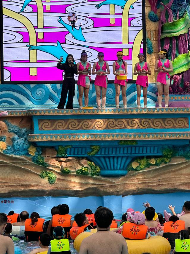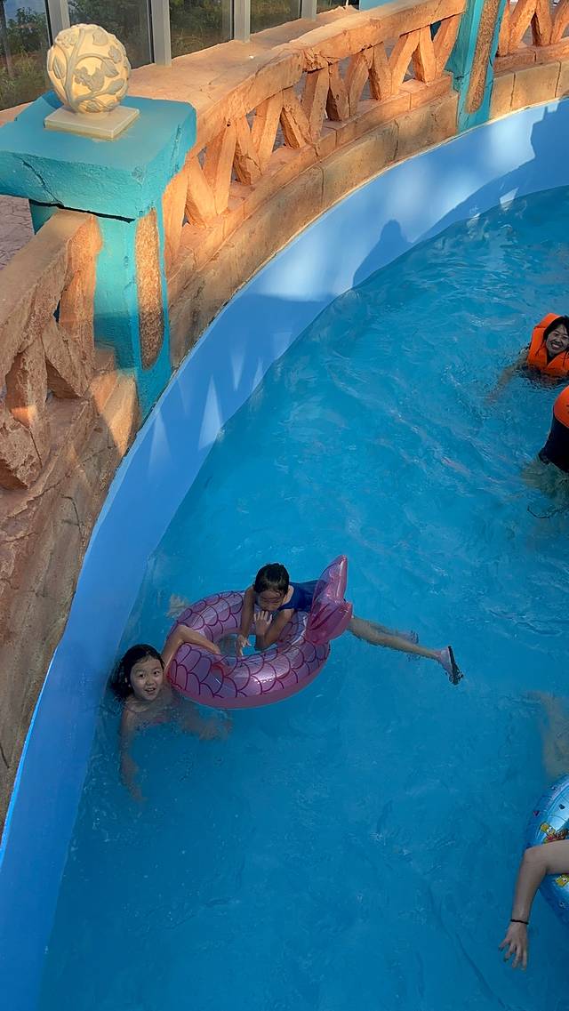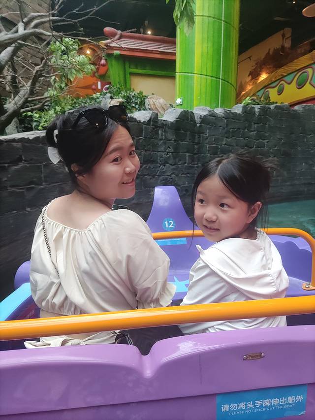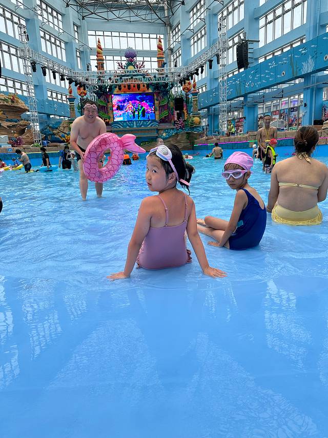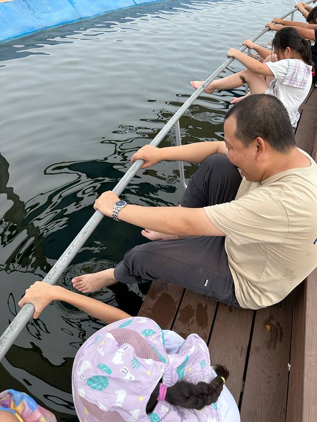 吃完火锅,小朋友们还想继续玩水,这个时候基本上别的项目都停了,只有阳光浴场和亲亲鱼可以玩到晚上10点,我们换上泳衣就又继续出发了。
