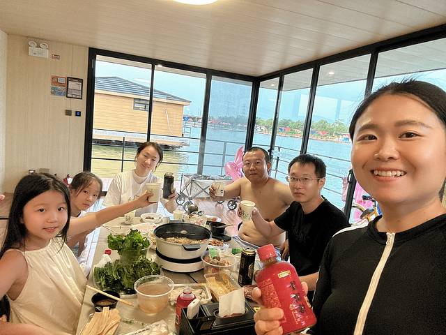 一下午的时光都在水中度过了,孩子们真是玩的太开心了,六点左右我们才回到水上别墅开始准备我们的水上火锅大餐!