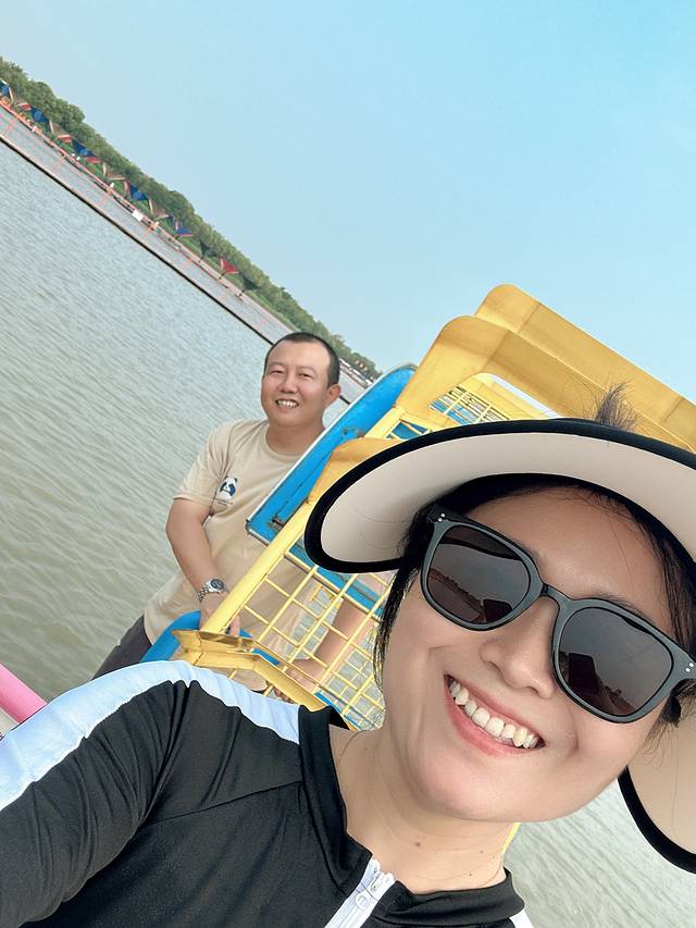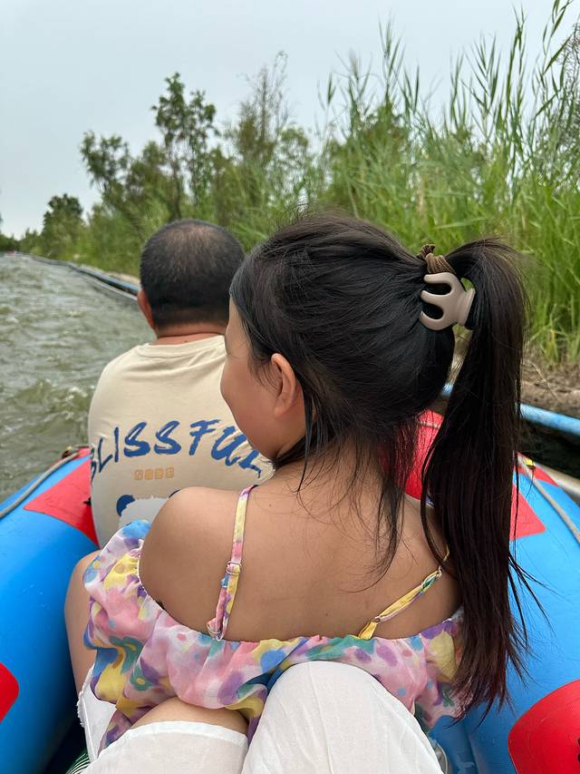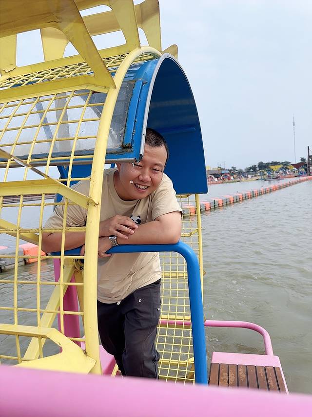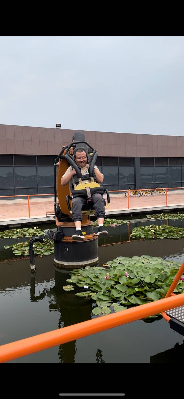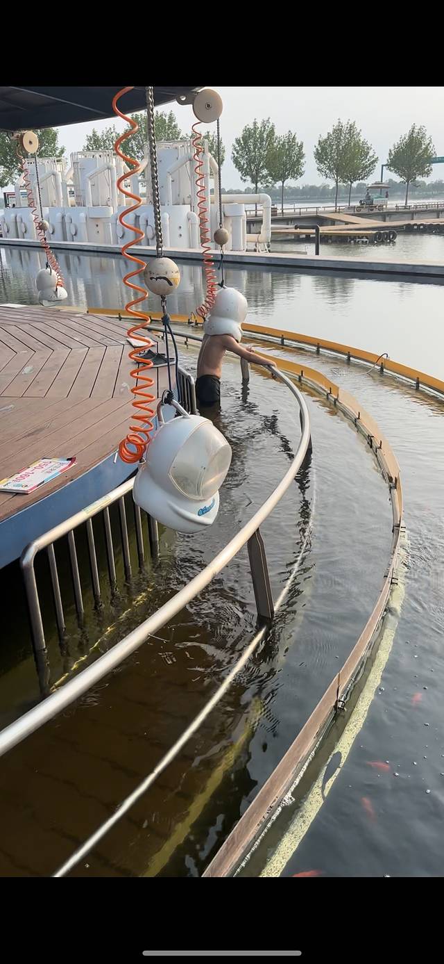 孩子们去蓝湾浴场游泳了,我和飞哥自己做的这个项目--特战船,当时没人排队,问了能玩多久,服务人员说没有时间限制,下班之前回来就行!上去以后发现没有时间限制也玩不了多久,是真的累,一个人在前面控制方向,一个人在后面走,通过在滚筒里走起来带动水流让船前进,我们走了一圈就回去,哗哗流汗了。