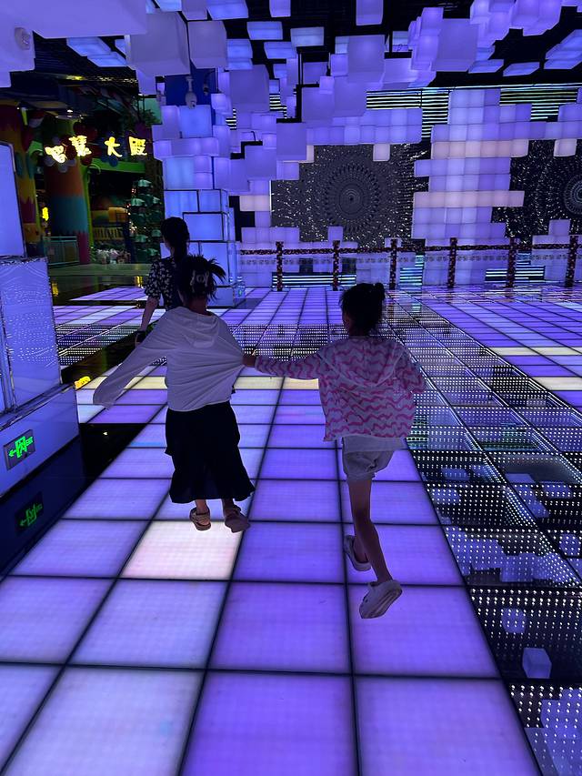 9点开门,我们基本上是顶门进去的,基本上11点之前都没有排队,进门就是魔方主题,地板踩就亮,小朋友进门就勾起兴趣开始兴奋。