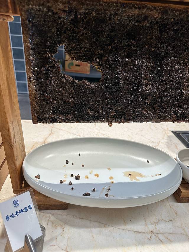 这个事蜂巢,不知道怎么吃,我们就刮了一点点尝尝。
