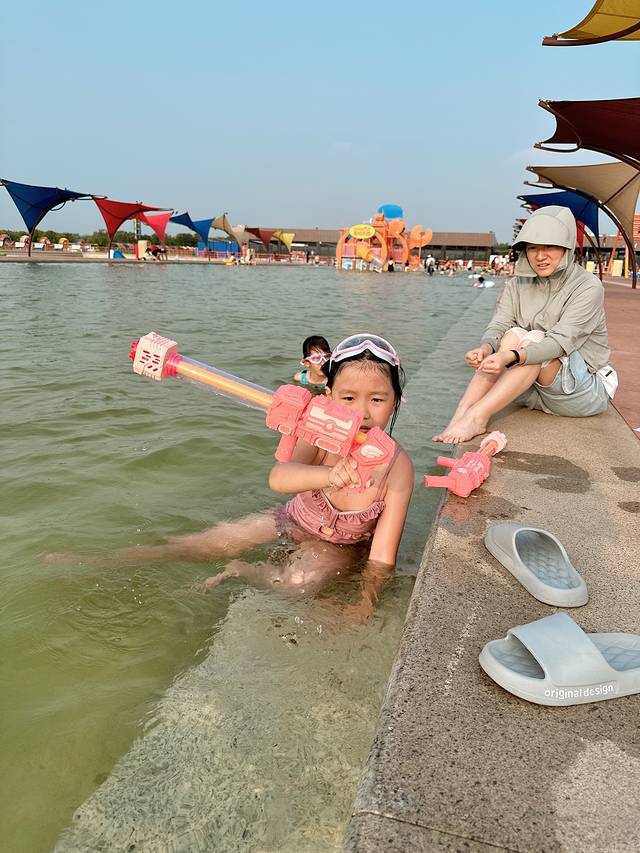 热浪湾最主要的两个游玩区域就是造浪池和懒人河,毕竟地方真不大所以半天游玩时间我觉得足够了,市内玩水不会晒但是出水以后还是挺凉的,一定给孩子带好浴巾。