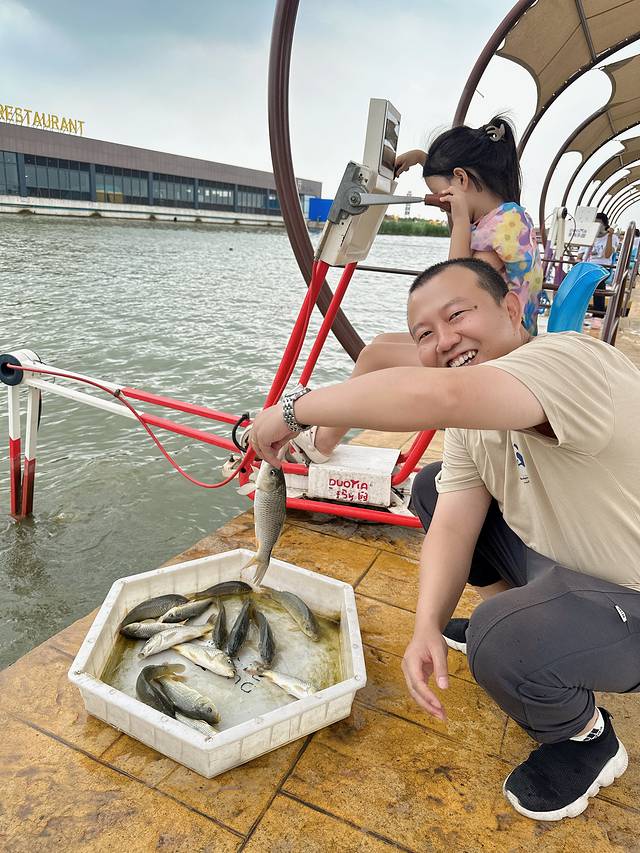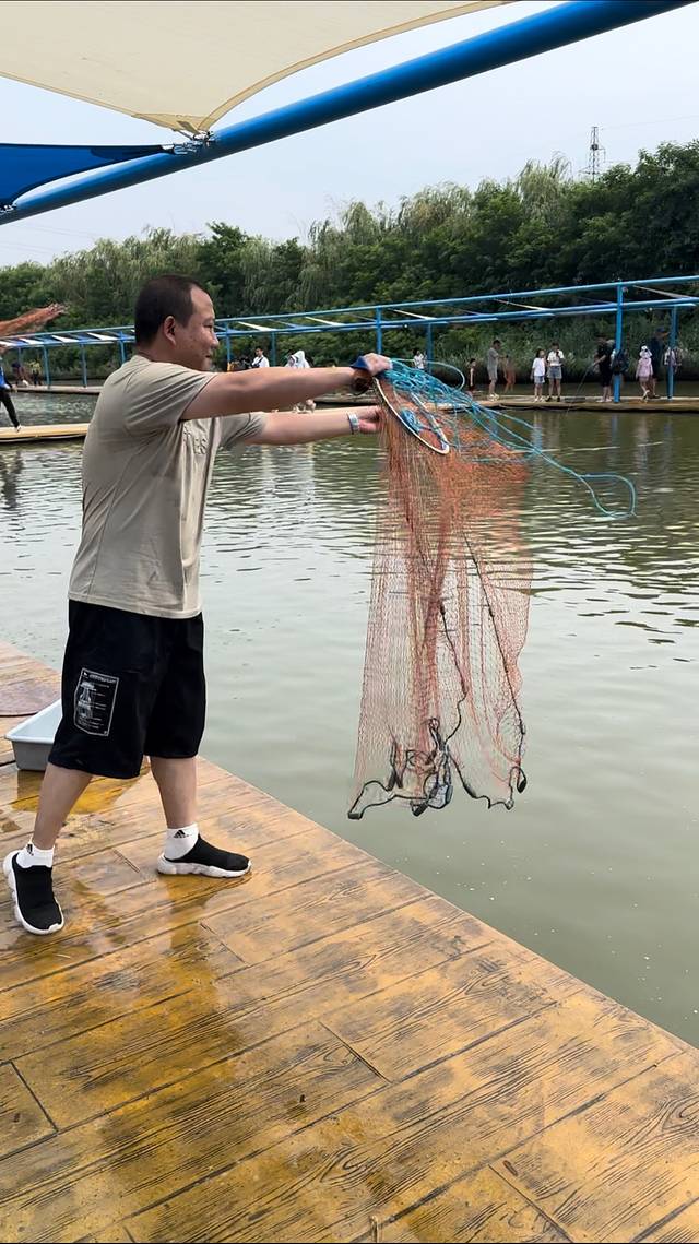 这是体验自己撒网捕鱼的快乐,入口处会有工作人员先教给你如何使用渔网,学习后就可以亲自撒下一网,本以为不会网住鱼可只要动作正确-一网下去也是收获满满啊!