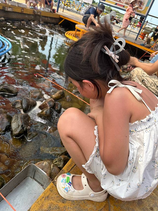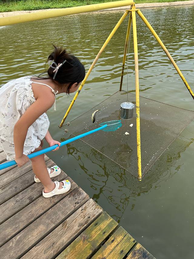 穿上皮叉子,化身捕鱼达人,所有道具都是园区免费提供,每天下午还有捕鱼大赛,获胜者可以把鱼带回家!