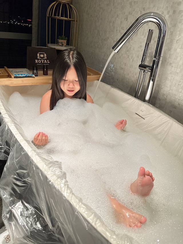 房间提供免费的一次性泡澡袋,我们自己带了泡泡浴的沐浴液,玩了一下午的凉水,泡个暖暖的热水澡真是太舒服了,差点花瓣,不然更有仪式感。