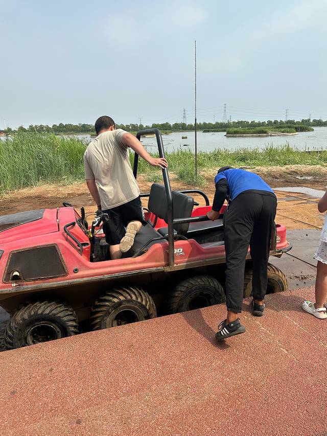这个项目叫极限穿越,地点有点偏僻,看上去很刺激,就是越野车在湿地里穿行,看上去像在水中开车一样!坐上去以后感觉也没有太快,只是车子动力挺足,启动转弯啥的一定抓紧了感觉要被晃下去的感觉!