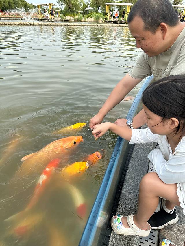 锦鲤不仅数量多,个头还特别大,如果手握紧了,一块鱼食可以喂很久,当然没了也可以再去取,都是免费提供的!