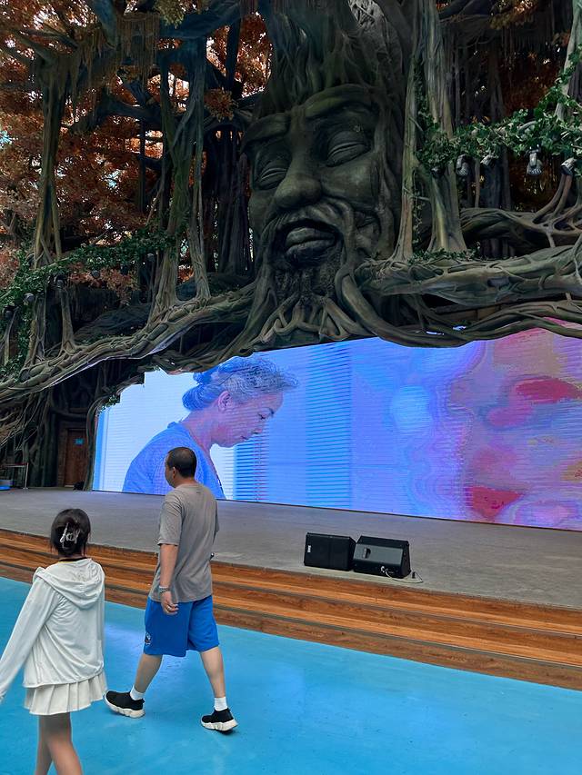 吃完饭我们带着孩子在度假村里溜了溜,很多商铺都没有开门,说是整点会有表演也没有看到,可能不是周末的原因,人流量很少,商铺的风格和大多数旅游景点一样,都是各种纪念品商店,全国各地感觉卖的东西都一样。