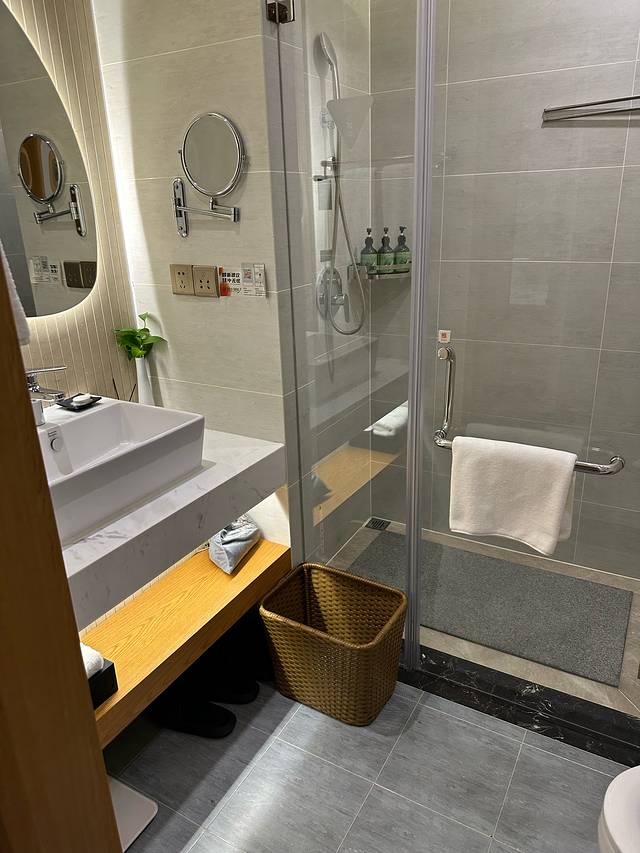 酒店就在度假村旁边,2023年新开业的酒店,所以整体都很新,配套设施也还算完善,唯一不足的是门口的停车场没有充电桩,需要到附近的充电桩充电,朋友的车是转天早晨去充的,好在有快充一个多小时就完事了!入住酒店停车场免费,正常是10元一次不限时。