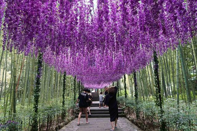 入园之后是很好拍照的紫藤花走廊还有小朋友喜欢的水乐园,景区内还有一个酒店,一天玩不够的话可以住在景区里的酒店哦,就在入园之后的地方。