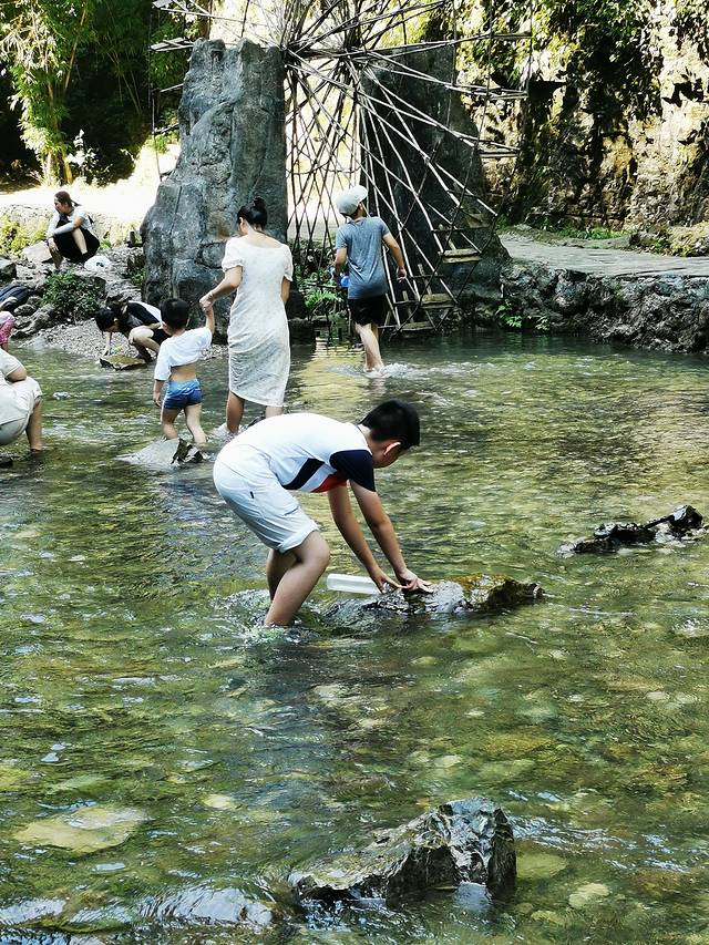 溪边人家景色秀丽,一路上基本都是平路,演出也很多。大多数人到哭嫁那个地方看了就返回了,其实还可以往前走,还有猴子,悬棺。中途还有个地方可以玩水,水清澈沁人,可以抓鱼虾螃蟹🦀孩子很喜欢。