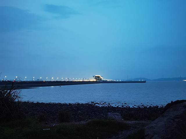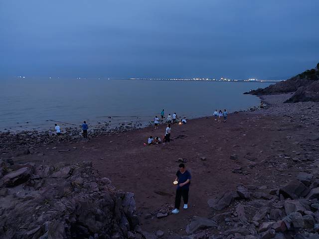 梅山湾附近有片礁石海滩,晚上很多人打着手电在礁石上找螃蟹等小动物。