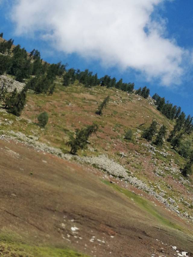 沿途都是沙子,土山,长几颗小草。靠近雪山附近才有了这样的风景