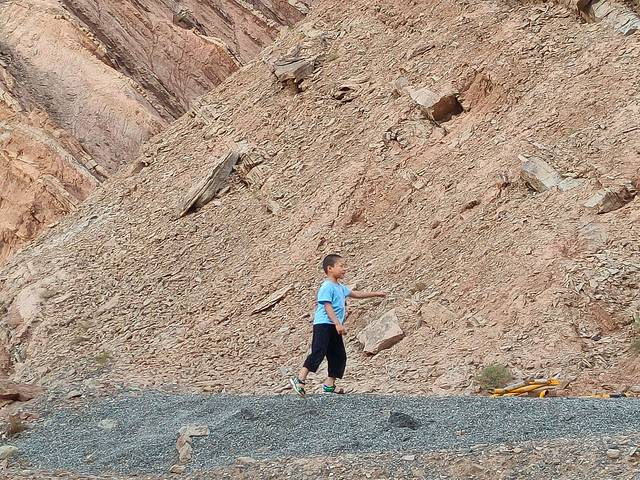 拜城吃了个中饭,本想附近看看石窟。朋友说,那里没东西了。只能又驱车返回库车。仍旧走了一段独库公路。走过波浪公路,日照金山。可是我的手机拍不出效果,只能脑补。过盐水沟收费站前有个休息点,隧道旁边。有天小河,水没有,河面就有白白的盐碱,很有特点。拍不出来,可以实地探寻。