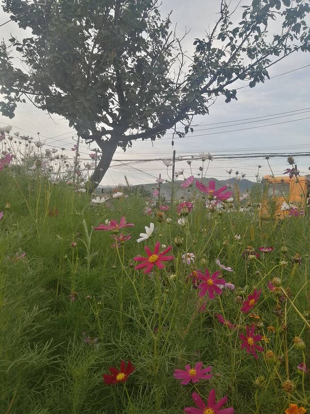 到那拉提镇已经是深夜12点。在关卡出7公里堵车了将近2小时。所以自己车的一定要避开高峰期。过了关卡,一路都有招客住宿的,感觉还是随时有房的。夜晚的民俗都挂了彩灯,神秘美丽。第二天一早,起来在民宿口,格桑花开的正欢。但是这里太干了,老板说天天要浇水,不然晚上花就发蔫