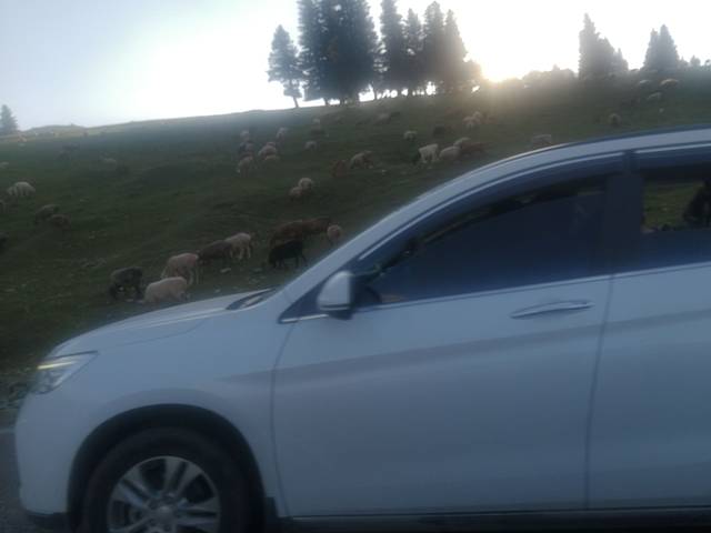 进去和静县,风景慢慢变的不同。草地,松柏,怪石,组成了童话般的世界。成群的肖恩羊,嚒嚒的叫着。奈何我的文字,写不出我此时看到听到的感受。一切需要你自己来体会