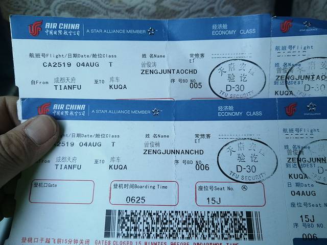 从7月下旬开始抢火车票,奈去新疆的火车票太紧翘,一直无法订购。最终选择了飞机。从武汉天河机场起飞,在天府机场转机。中间等了6小时。好在天府机场有些店铺有沙发椅。深夜机场人也少,夏天在沙发椅上睡一晚也挺凑合。小孩因为第一次坐飞机,很兴奋这种体验。飞机票还算适中,人均1700。