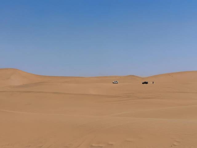 要四驱的越野车才能在沙漠中行驶,两驱的车一下水泥公路进沙漠就陷在里面走不动,我试了,而且还需要必要的沙漠驾驶技术和准备,比如车胎放气。