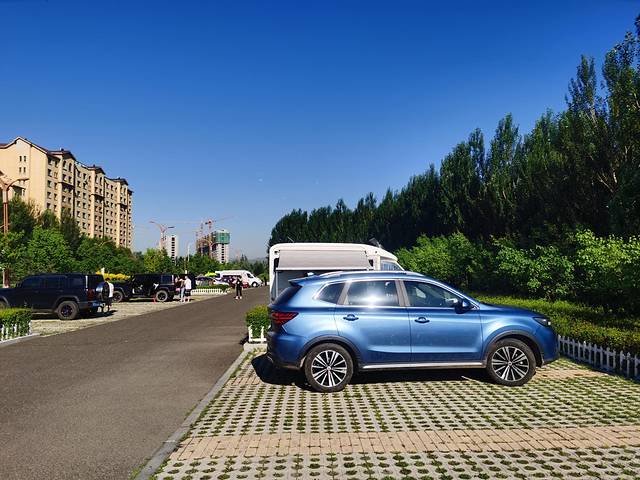 晚上在敕勒川草原停车场露营(不是敕勒川草原入口的停车场,而是靠近体育馆那一侧的停车场,停车场是免费的露营地)。