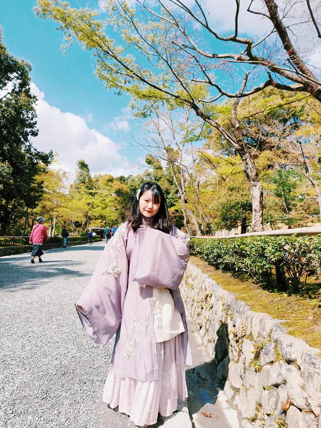 大巴上,一位年迈地穿着和服的老奶奶,说着一口流利的京都日语,一边用手触摸着我衣服上的绣纹喃喃自语,我虽然知道她是在夸赞我汉服上的工艺,但是除了实在无法表达出我内心的感激。