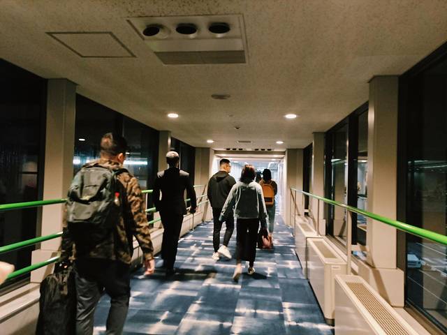 在细碎的石子路上我逛了两圈,停下来在种满樱花的道路上小憩,拿出了早晨从胶囊旅馆带出来的面包和水,补充体能。