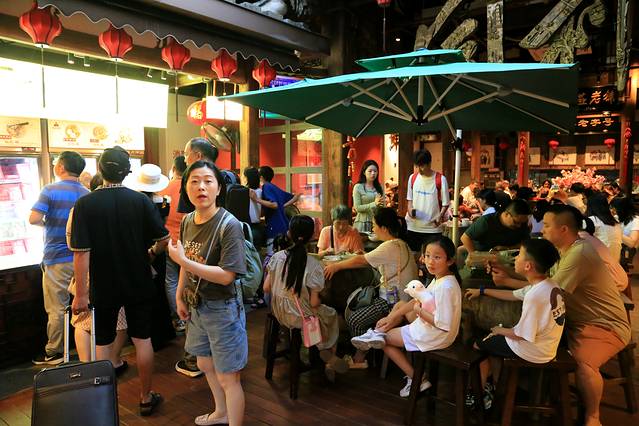 一大早去仙人井,排队买票的工作人员说,先坐游艇,再去景点。