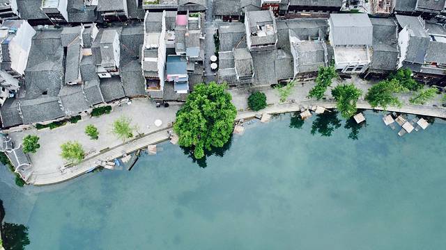 🎈7:30-9:00:民宿对面翠翠岛,下楼在河边用无人机拍下边城全貌→早餐