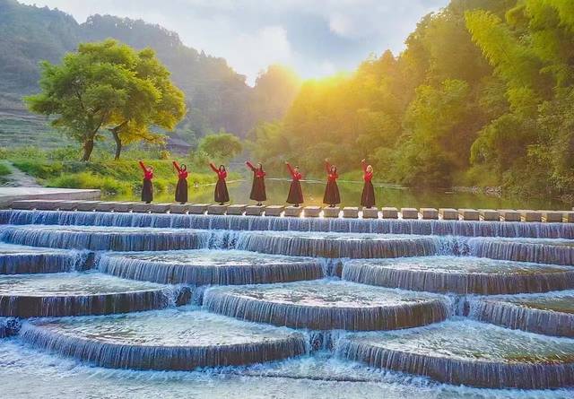 这是令人神往的世外 桃源 ,清晨的村庄在袅袅烟云里曼妙抖落,徐徐露出真容。一幢幢小木楼或挨挨挤挤,或独居山旁,散落在四周都是群山的谷地中,袅袅炊烟飘向空中;一条条小溪水或沿路边或沿房屋或沿田地汩汩流淌,奔向卯溪。