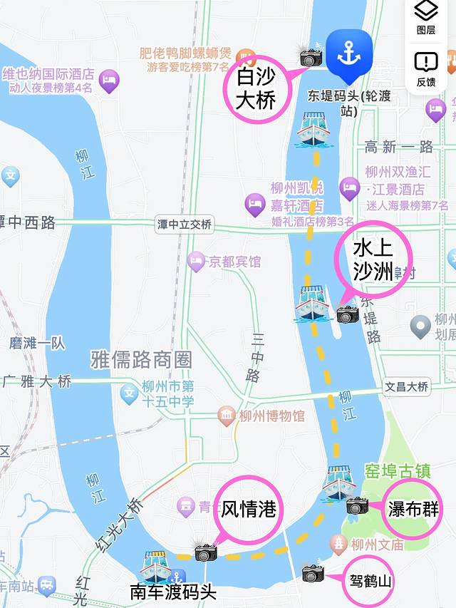 ❶穿过柳州白沙/壶东/文昌/文惠/柳江等五座大桥。
