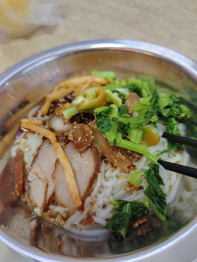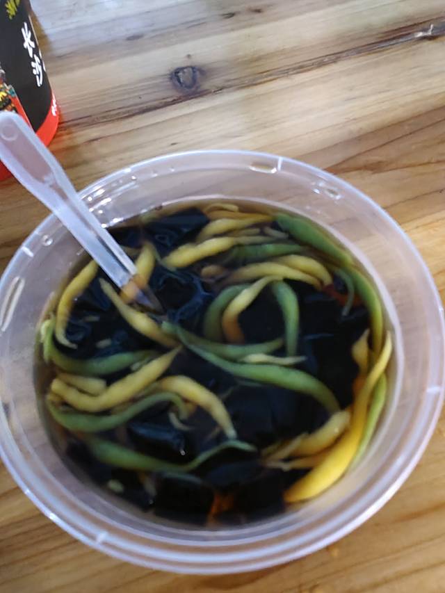 在这里看到一家桂林米粉,我们避开人群选择了这家桂林米粉,只能说还可以吃,里面一样的有螺狮粉的各种配料,比如酸笋都是免费加的,还有猪皮、鸭脚这些可以加。