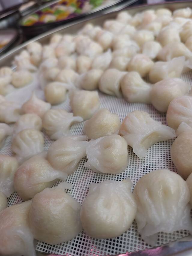 这个是虾饺,里面真的有一个个的虾仁,5个/10元,严格算起来不便宜哦,还有一种是里面各种颜色的虾饺,但是里面不是虾仁,是其他的肉或者啥的,个人觉得虾仁的好吃一些哦