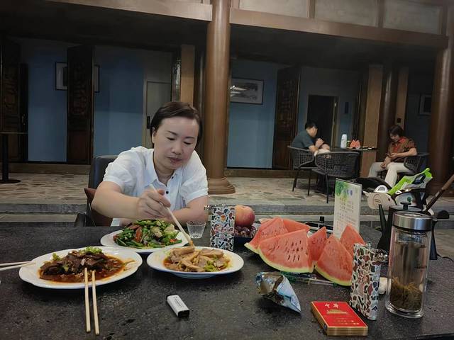 第二天一觉醒来外面细雨蒙蒙,对面店已经给我们准备好了早餐。小米粥、锅盔、青辣椒、土豆丝……像家里的味道,昨天晚上的带皮肘子、凉拌羊血、凉拌素菜、驴蹄子面味道都很好,而且价底量大,非常好👍👍👍两餐才花了一百多,真的超值。