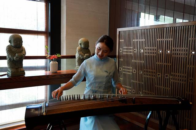 养生之道,在于养心,悦泉行馆深谙此道。行馆结合古代君子九雅:琴棋书画诗酒花茶香,安排了一系列体验项目。