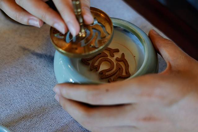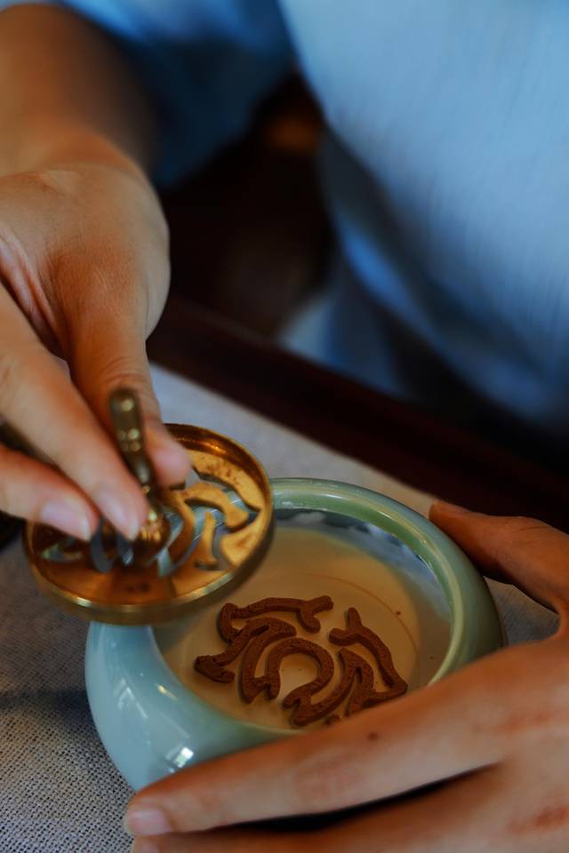 除了琴茶,焚香都是收敛心情的必备程序,你也能体验到当代人解压日常的香道入门——手工纂香。屏气凝神,将香灰一点点压平,再放下篆模扫平香粉,方寸篆香中,独享清闲。