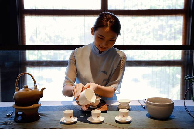 跟着茶艺师的展示和教学下,我们也能亲手体验一次泡茶方法。品一壶幽香的铁观音茶,听着茶艺师将茶道技艺精髓娓娓道来,被茶艺的博大精深和优雅所迷倒。
