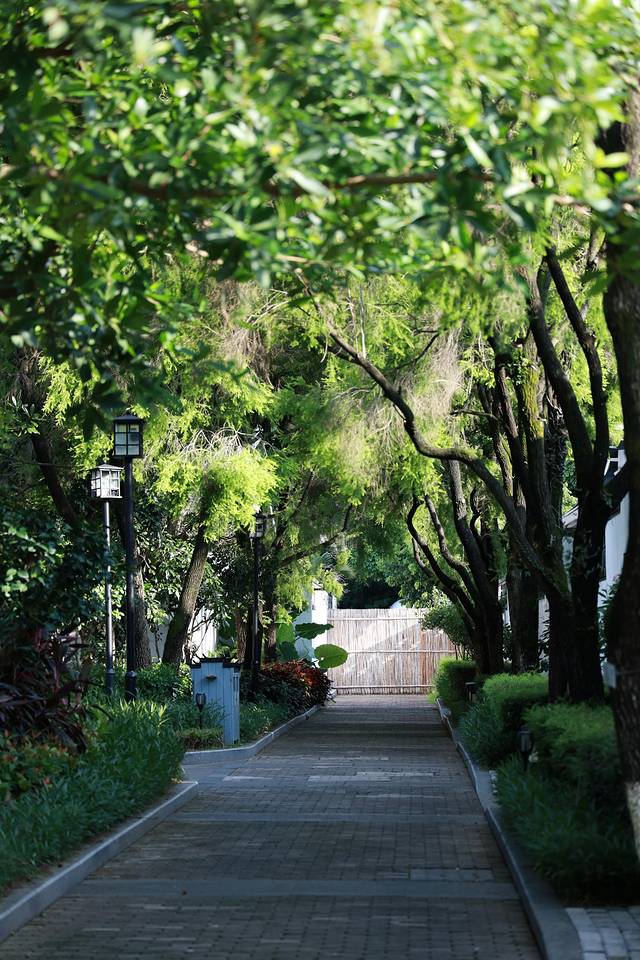 行馆植被覆盖面积 75%,走在行馆里,移步换景,碧水繁花小径,每一处都自成风景。即使是阳光穿过树叶投下的影子,都能成为一幅优雅画卷。
