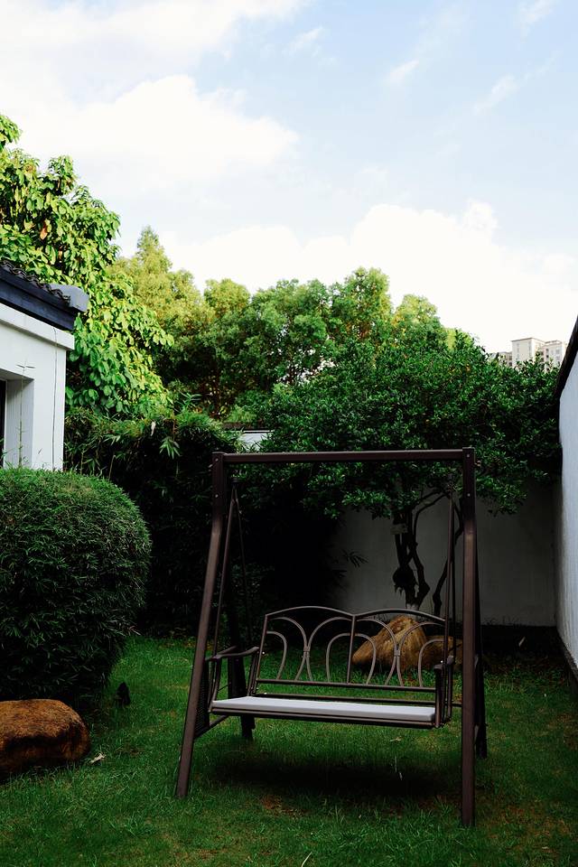 推开狮头铜扣木门,会看到白色的围墙形成的独属于自己的清幽院落,午后在这里晒晒太阳,在秋千上晃晃悠悠,静享静谧的时光。