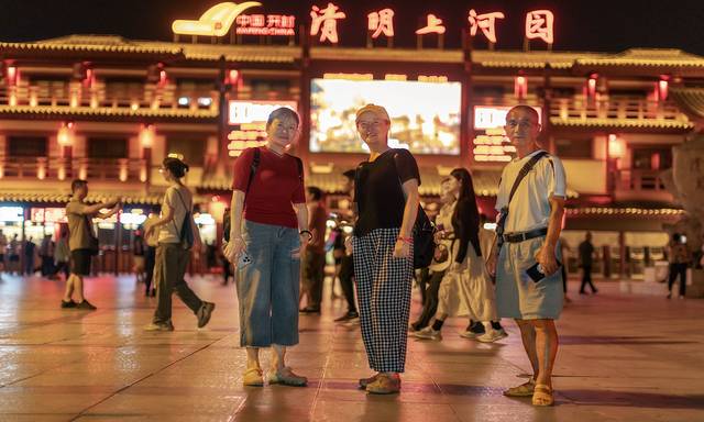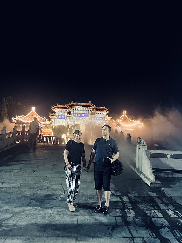 离住地就几百米行程,我们就到了“清明上河园”大门口,这里灯火辉煌,人头攒动…