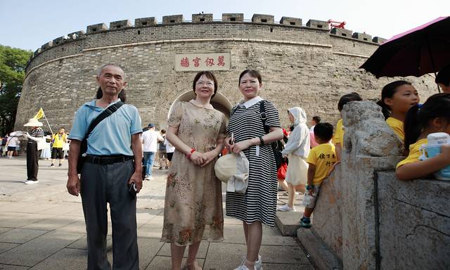 伴着钟声阵阵,开城仪式准时上演,古老的城门徐徐打开。有严整的士兵列阵,有优雅的古典舞曲,更有传统的文化礼仪,隆重而又亲和,通俗而又优雅。不过,广场太小,多数游客摩肩接踵,只听见一句高声朗诵的孔子名言—.—“有朋自远方来,不亦乐乎!”