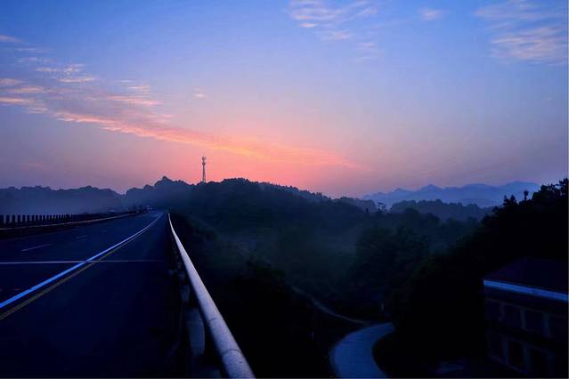 这是一条多么多么动人心弦的地平线啊!迷人的蓝调正被猩红的霞光一点儿一点儿的撕开。