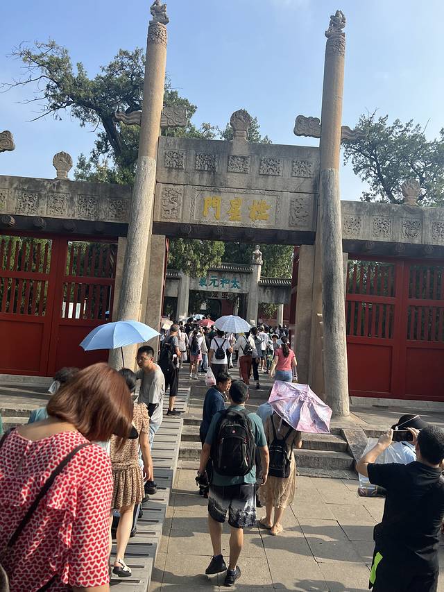 棂星门是孔庙的第一道大门,“棂星门”三字,系乾隆题于1748年。古代传说棂星为天上文星,以此命名意味着孔子为天上星宿下凡,喻尊孔如同尊天!