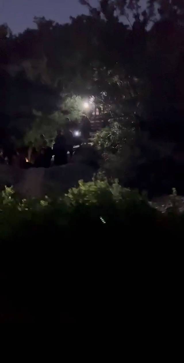 大约摸黑路半小时,宾馆工作人员带我们穿过一个只容纳一人能过的狭口,终于抵达一座山头,啊!这里太棒了,场子刚好容纳我们一个宾馆的人在这儿!